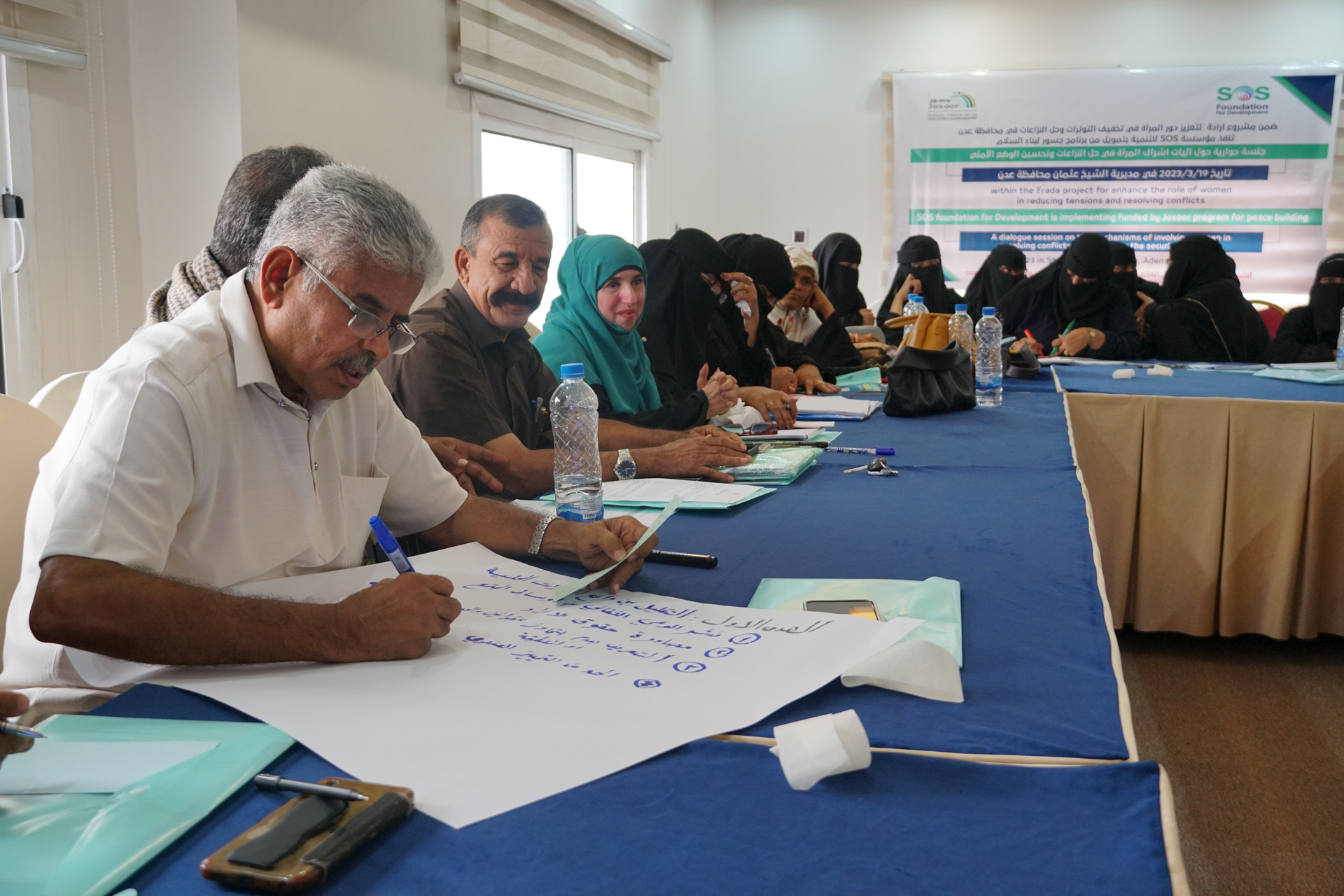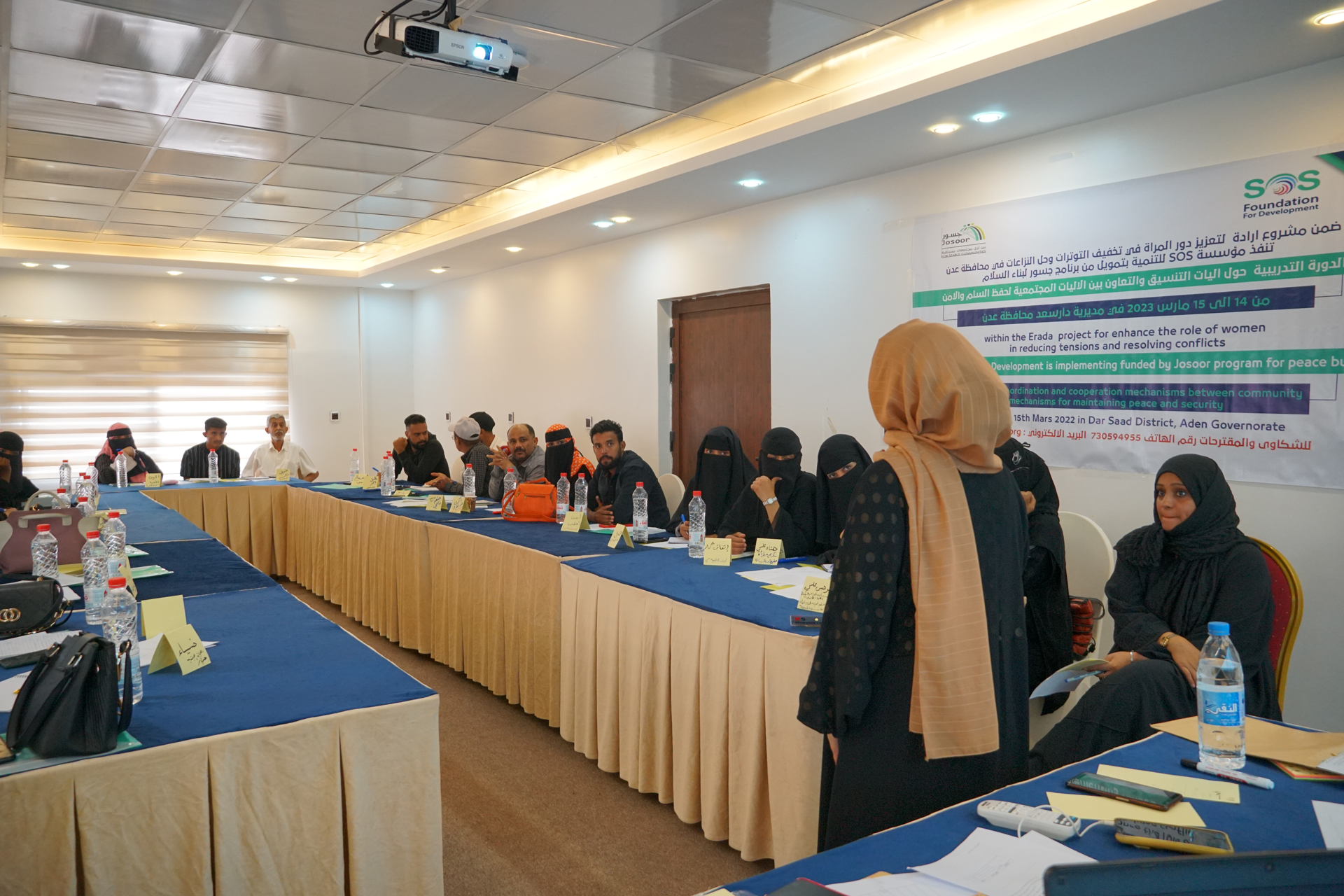 تعزيز دور اللجان المجتمعية بشكل عام والكوادر النسائية في اللجان المجتمعية بشكل خاص، وكذلك الشرطة النسائية في حل النزعات وتخفيف التوترات في محافظة عدن.